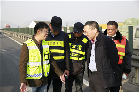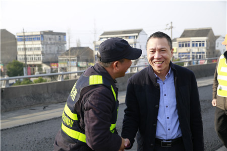 在施工現(xiàn)場,張建平對路面專項養(yǎng)護綜合督查組馮濟爐和葉榮江兩位同志說,你們就是公司的眼睛,要把握施工現(xiàn)場動態(tài),把好施工質(zhì)量和安全關(guān);你們是公司的手,要督促工程保質(zhì)保量快速推進。這是一次確立科學養(yǎng)護理念、鍛煉管養(yǎng)人才,展示公司硬實力的機會。看著這兩位老同志被陽光曬得黝黑的臉龐,張建平緊緊地握住他們的手,連聲對他們說:“你們辛苦了,你們辛苦了!”