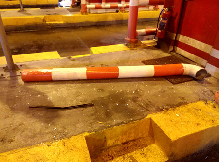 大型貨車過(guò)收費(fèi)站撞斷防撞欄 |