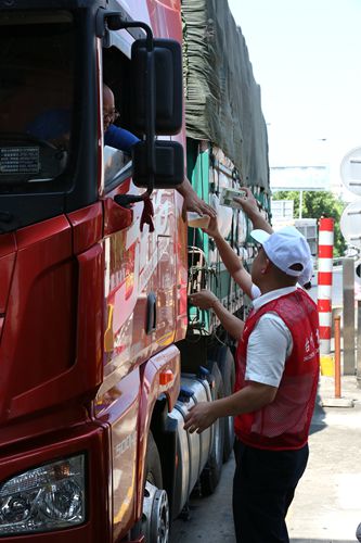 持續(xù)的熱浪高溫,給行駛在高速公路上的車輛帶來極大的安全隱患。 8月6日,臺州收費所組織志愿者開展“炎暑酷夏送清涼,絲絲關(guān)愛促平安”為主題的送清涼活動,為出行在外的司乘人員們送去一絲清涼,緩解旅途中的枯燥和勞累。