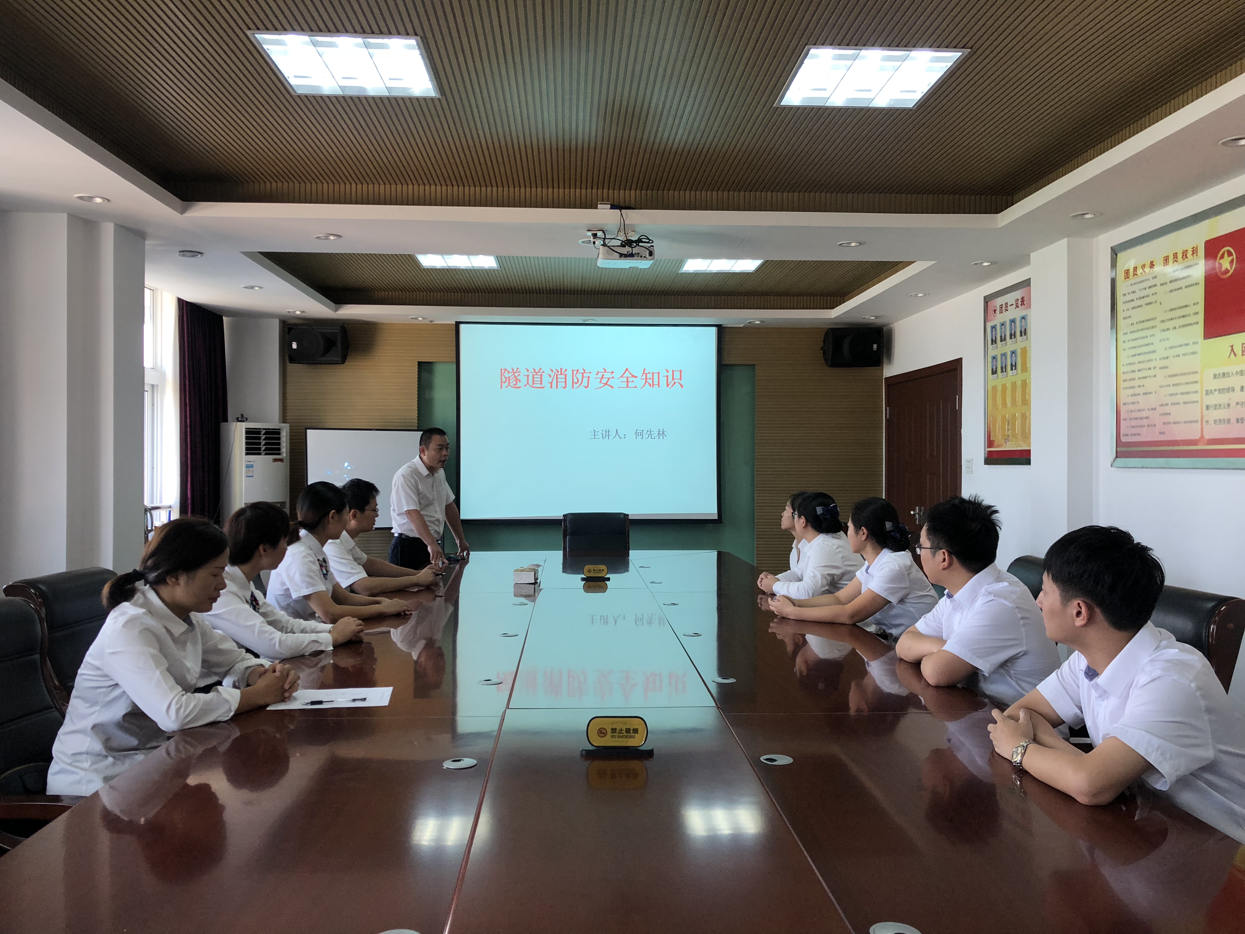 關(guān)注消防 平安你我 臺州收費所開展隧道消防安全知識培訓 為提高員工火災救援能力增強員工隧道防火意識,9月26日上午,臺州收費所組織員工開展隧道消防安全知識培訓。此次培訓由該所副所長何先林主講。行政人員、征費班組人員參加培訓。