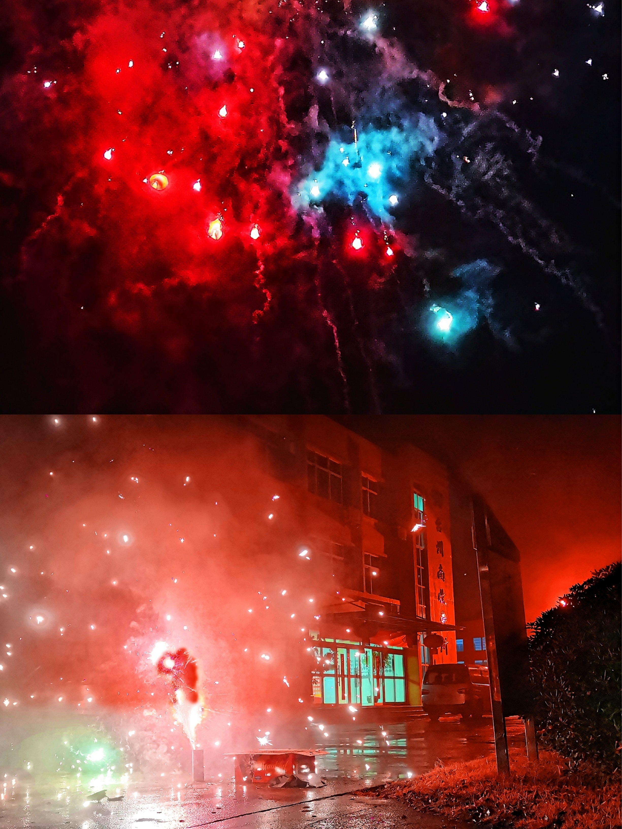 (圖為臺州南收費所迎接新年的鞭炮煙花)