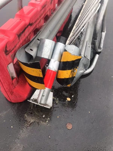 圖為被撞壞的設(shè)施 當(dāng)天10點(diǎn)10分, 該所出口外廣場(chǎng),一輛5類(lèi)大貨車(chē)趁著雨勢(shì)較大,竟私自將道路中間水碼移開(kāi),然后違規(guī)掉頭撞壞隔離帶及外部鐵質(zhì)柵欄后逃逸。因當(dāng)時(shí)雨勢(shì)大且該車(chē)車(chē)速較快,收費(fèi)二班當(dāng)班安全員林葉輝在追逐示警無(wú)效后立刻報(bào)告班長(zhǎng)陳軍,通過(guò)調(diào)取監(jiān)控錄像后查到該車(chē)車(chē)牌,并迅速與指揮中心取得聯(lián)系。經(jīng)指揮中心查詢(xún),該車(chē)為某公司名下運(yùn)輸車(chē)輛,隨即陳軍與該公司取得聯(lián)系。 經(jīng)了解,該車(chē)駕駛員因雨天行駛速度慢,怕耽誤去院橋下貨,一時(shí)沖動(dòng)違規(guī)掉頭想節(jié)省時(shí)間,在撞到隔離帶后更加慌張?zhí)右?。在和該?chē)司機(jī)耐心溝通后,司機(jī)表示下完貨后會(huì)立刻前來(lái)處理。 經(jīng)過(guò)近一個(gè)小時(shí)的等待,這位司機(jī)終于回到現(xiàn)場(chǎng),公司理賠人員及安保人員與司機(jī)一同確認(rèn)隔離帶損壞情況,確認(rèn)無(wú)誤后該車(chē)司機(jī)繳納了賠償款后駕車(chē)離開(kāi)。 在此筆者提醒各位司機(jī)朋友,切勿違規(guī)掉頭以免造成不必要的危險(xiǎn)。 洪燈杰
