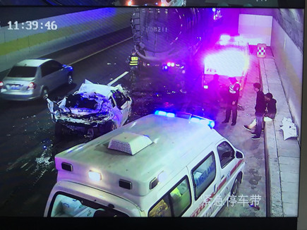 圖為事故現(xiàn)場(chǎng) 情況緊急,一接到指令,巡邏車立即在南廣場(chǎng)調(diào)頭,趕赴事故現(xiàn)場(chǎng)。而此時(shí)較大的車流量已造成后方堵車,導(dǎo)致巡邏車被堵在隧道口,執(zhí)勤隊(duì)員怕時(shí)間耽擱太久,便火速跑到事故現(xiàn)場(chǎng),第一時(shí)間將車?yán)锏娜藛T救出。所幸轎車內(nèi)四人只有一人腳上受傷,中控立即拔打120急救電話。在他們還在施救的時(shí)候,追尾事故卻頻頻發(fā)生,500米左右、1300米左右的超車道上先后發(fā)生兩小車、三車追尾事故,隧道內(nèi)排起了長(zhǎng)龍。為了保證在最短時(shí)間內(nèi)恢復(fù)正常通行,執(zhí)勤隊(duì)員忙著奔赴現(xiàn)場(chǎng)指揮預(yù)警,應(yīng)急救援有序展開。 現(xiàn)場(chǎng),監(jiān)控中心、交警、執(zhí)勤隊(duì)等部門分工協(xié)作,整個(gè)施救過程一直持續(xù)到中午12點(diǎn)多才順利完成。盡管執(zhí)勤隊(duì)員到現(xiàn)在都滴水未進(jìn),但每個(gè)人臉上繃緊的神經(jīng)終于都得到了放松。 林玲