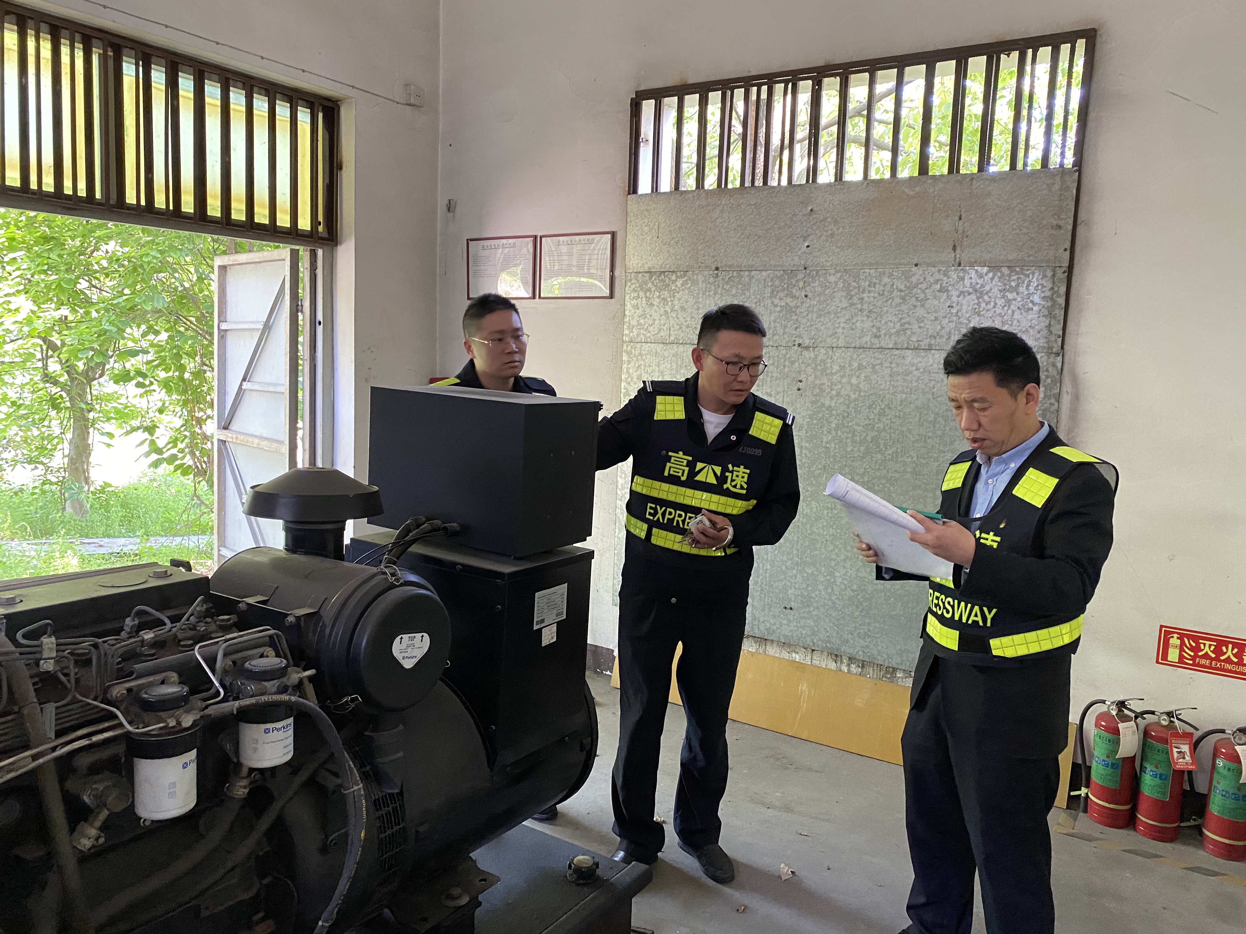 圖為檢查配電柜現場 目前,全國高速公路仍處于免費通行階段,黃土嶺隧道日流量高達6.3萬輛,日趨常態化的大流量成為隧道所安全管理的最大挑戰。為保障隧道行車安全,道路暢通,該所持續加強管理,在“五一”節前,重點對配電室、發電房進行了線路排查,對發電機進行日常維護與保養,保證在遇突發停電情況時,設備能夠不斷電運行。還對滅火器、消防泵等應急設備進行檢查,確保有效應對突發事件。以及查看了隧道內的照明系統、警示標志等設施和排查房建方面有無脫落風化發生,確保雨季前的安全生產。