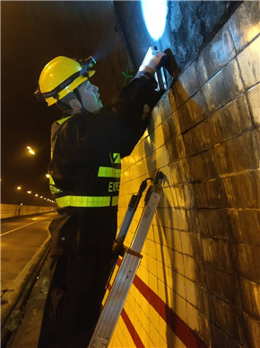 此次清洗檢修為期兩天,共修復照明燈具290盞,其中新裝燈具117盞,更換逃生標志牌28塊、LED指示燈泡10只、光端機3對、攝像頭2只,隧道整體面貌煥然一新,為“五一”期間提供了安全暢通的行車環境。