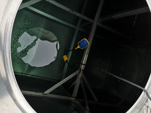 圖為接上自來水后水箱里清澈的飲用水