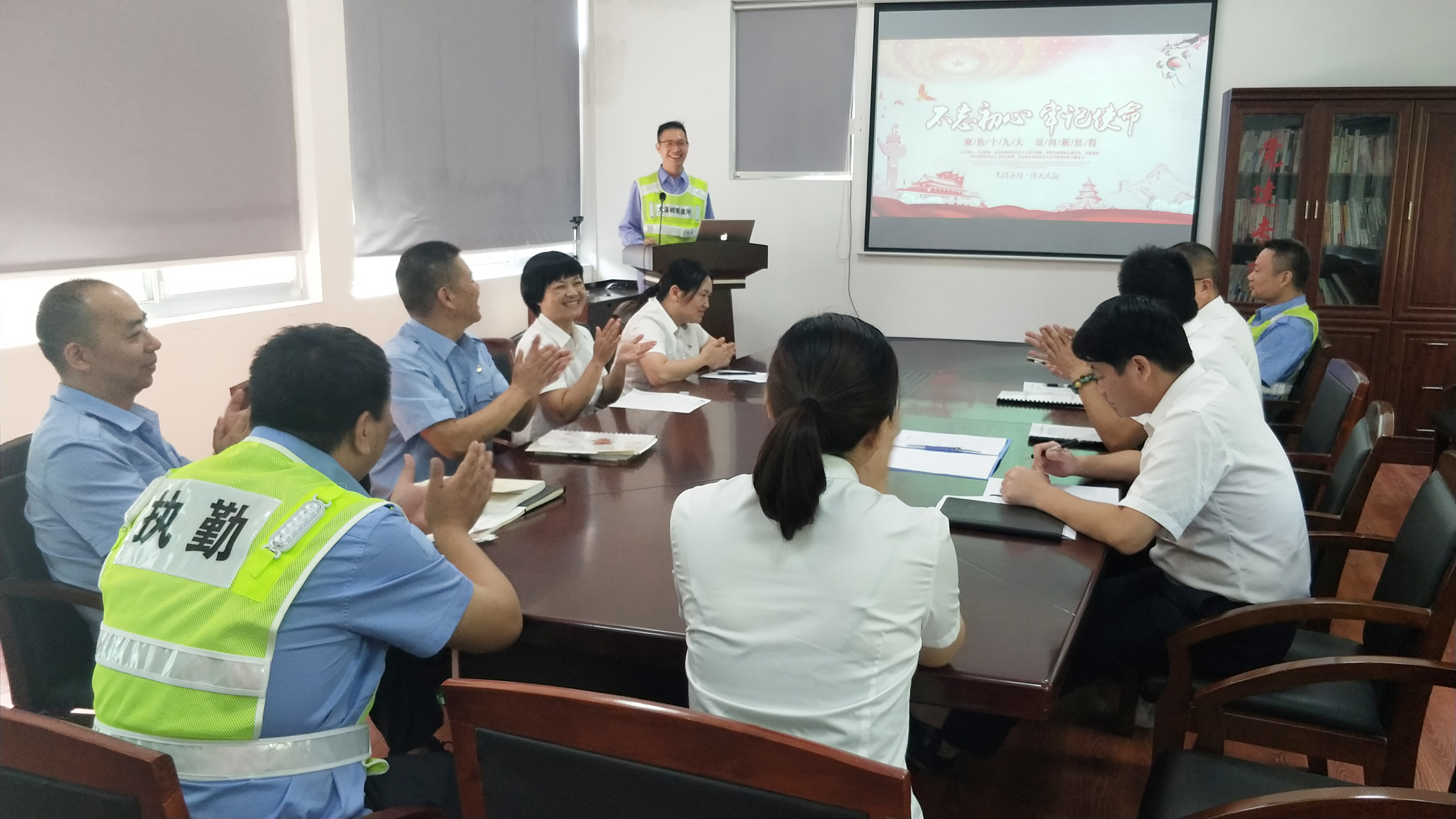 圖為演講賽現場 此次演講由隧道所黨員、執勤隊業務骨干參加,演講比賽過程中,參賽的七位選手緊緊圍繞“不忘初心,牢記使命”這一主題,結合各自的本職工作,立足崗位實際,從不同角度、不同層面,說身邊的人、講身邊的事。有執勤隊長對隧道安全責任的解讀,機電人員對隧道設備維護的擔當,中控員對隧道24小時堅守的承諾,安保人員對隧道消防安全的認知,還有行政人員對奉獻的感慨,演講者們談感想、抒情懷、表決心,為大家分享了各自對初心和使命的認識,從內心抒發了對中國共產黨、偉大祖國無限敬意和熱愛之情。他們用包含深情,富有感染力的演繹,使全場觀眾深深地感受到他們強烈的愛國熱情。