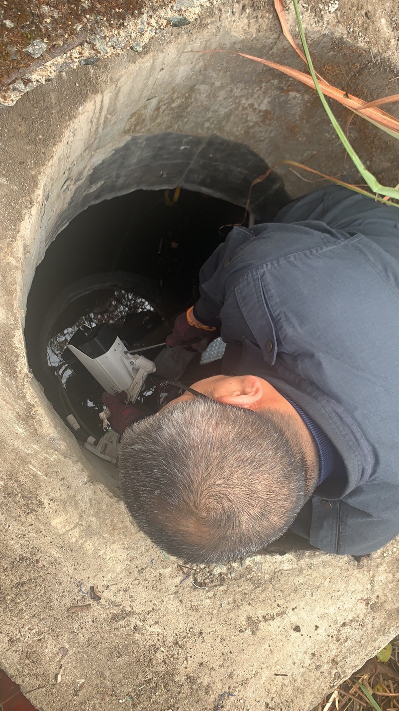 大溪嶺南高位水池地點在溫州地界,山體較高,攀行需要近一個小時,金所得知情況后,立即帶著執勤隊上山到高位水池檢查,他們背著工具箱,戴著手套、拿著柴刀,經過一個小時的披荊斬棘來到南高位水池的井口,金所爬到井里進行檢查,發現光纜和電線都被老鼠咬斷了,才導致圖像不能工作,當場把電線接了回去,并回所準備其他材料,明日再次登山修理。