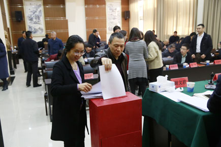 圖為公司董事長謝文君在會上匯報2016年度工作