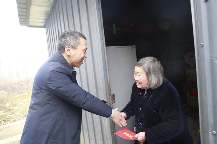 圖為集團總經理張建平慰問塘上村老人