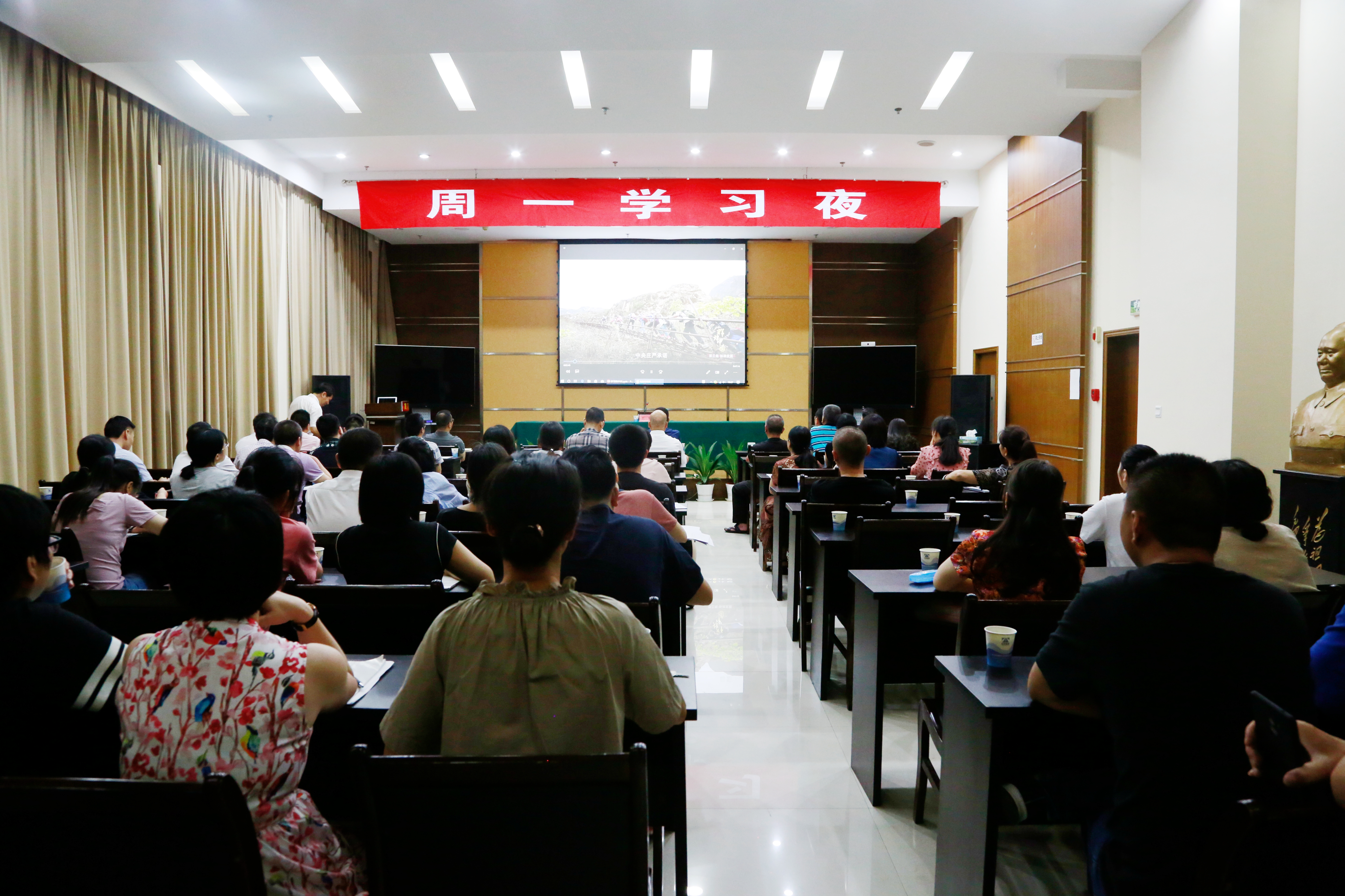 圖為參加學習的領導干部職工 片中輻射出的中國正能量感染了在場所有的觀看人員,大家深刻感受著創新、協調、綠色、開放、共享的新發展理念給中國帶來的巨大變化,對祖國的繁榮富強、和諧友愛充滿自豪感。并表示堅決維護以習近平總書記為核心的黨中央,砥礪奮進,貢獻個人力量。 陳林偉
