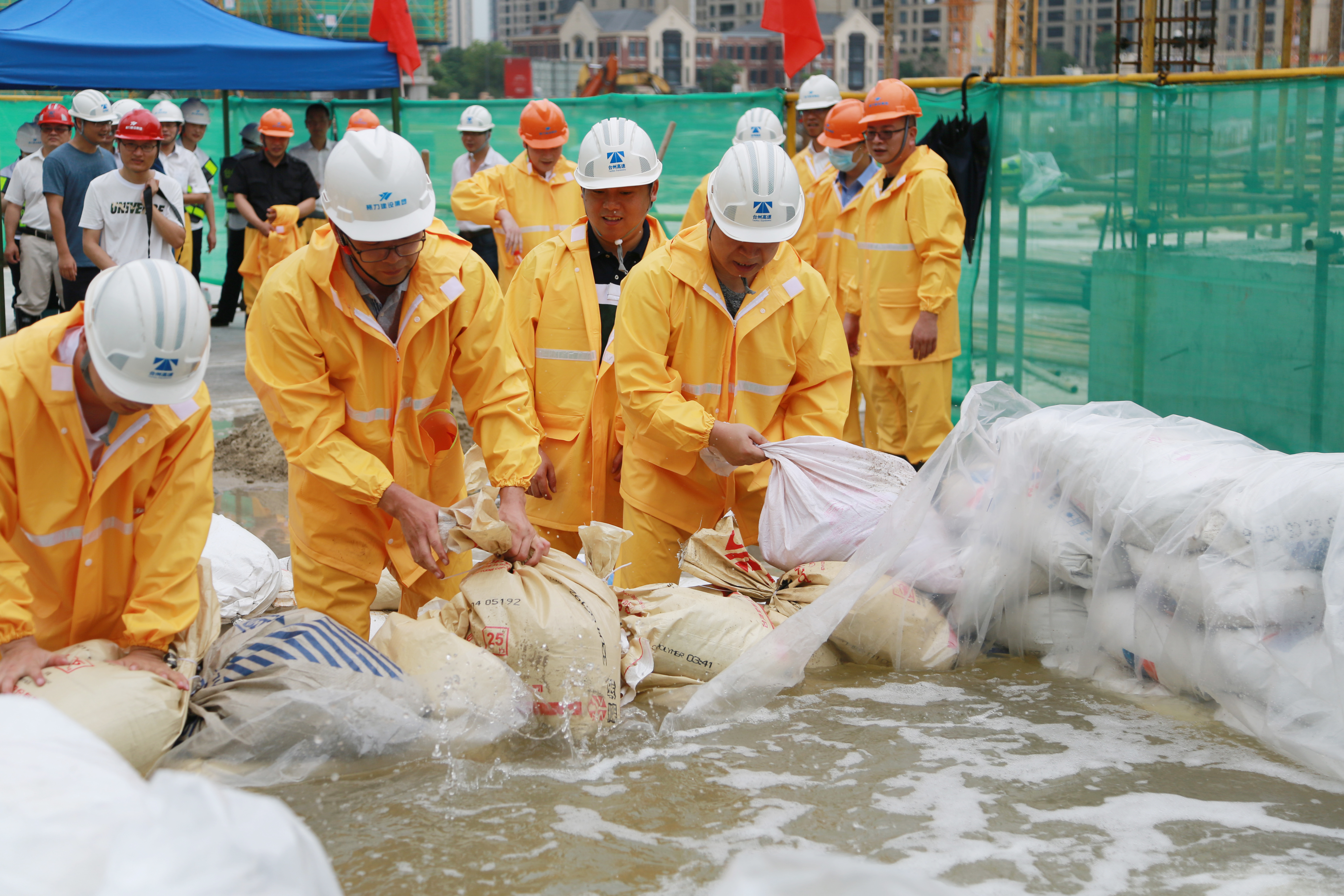 圖為模擬建筑工地面對洪水倒灌的現場應急搶險