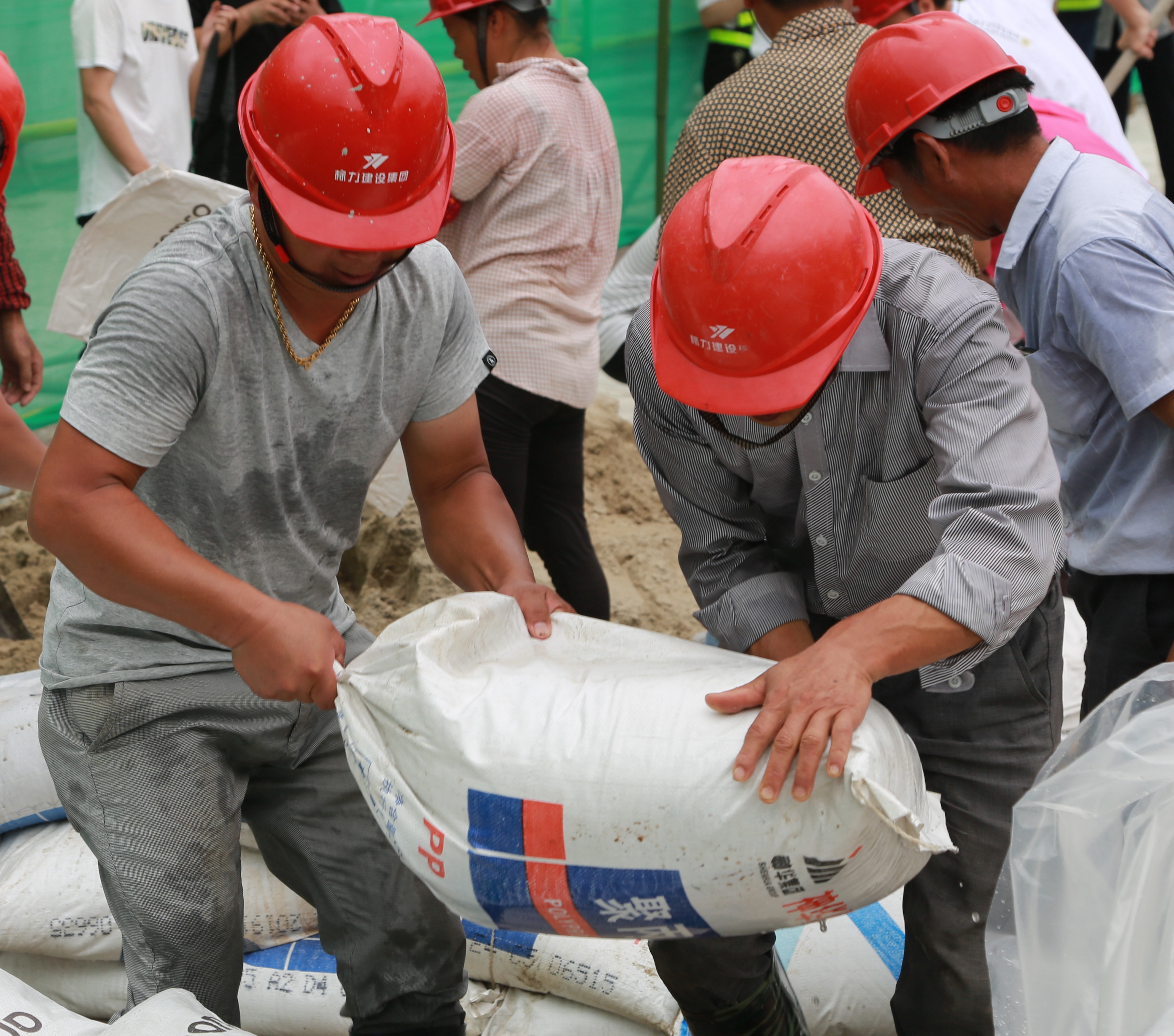現場,水“嘩嘩嘩”涌下來,“洪水”就要來臨,搶險人員快速分工,有的拿鐵鍬,有的裝置新沙包,有的扛沙包,有條不紊圍堵“洪水”,真實模擬防洪搶險。期間突然出現部分圍堰被水沖垮,情況緊急,搶險人員沉著應對,迅速改變堆疊方法,最終成功將“洪水”缺口圍堵,完成圍堰防洪任務。 項同富對此次演練作了點評:封沙包要采用柔性材料,避免劃傷人員;裝置沙包時不能裝得太滿;沙包堆疊要注意交錯咬合;要根據實際情況判斷沙包要堆疊幾排才能防止被水沖垮。