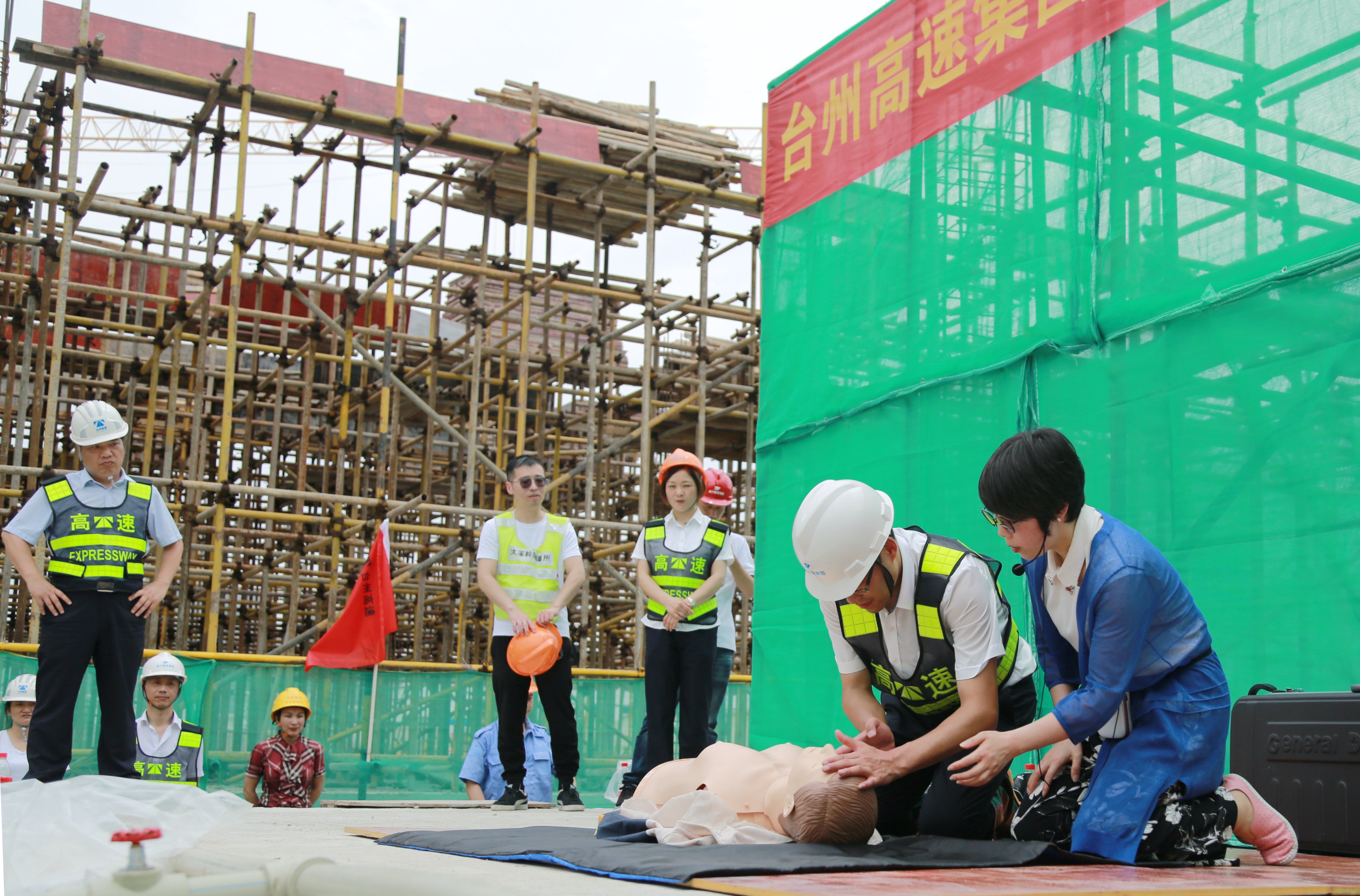 圖為心肺復蘇急救演練 隨后,臺州職業技術學院副教授李美芬到場為大家開展心肺復蘇急救知識培訓。李美芬在現場結合模型詳細為大家講解心肺復蘇急救時的注意事項、操作方法、步驟流程等,并作了專業的示范。現場人員踴躍上臺實踐學習,李美芬一一在旁邊作技術指導,強化了大家的學習效果。 整個演練過程有條不紊,集團各部門協作配合有力、扎實有序,現場人員反應迅速,現場指揮和演練人員配合默契,全方位展現了臺州高速集團應急搶險能力和各部門嚴謹細致的工作作風。本次演練為“安全生產月”活動的一部分,臺州高速集團將以此為契機,深化安全教育培訓,狠抓安全措施落實,確保公司安全基礎不斷穩固。