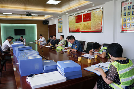 圖為檢查內業(yè)資料現(xiàn)場