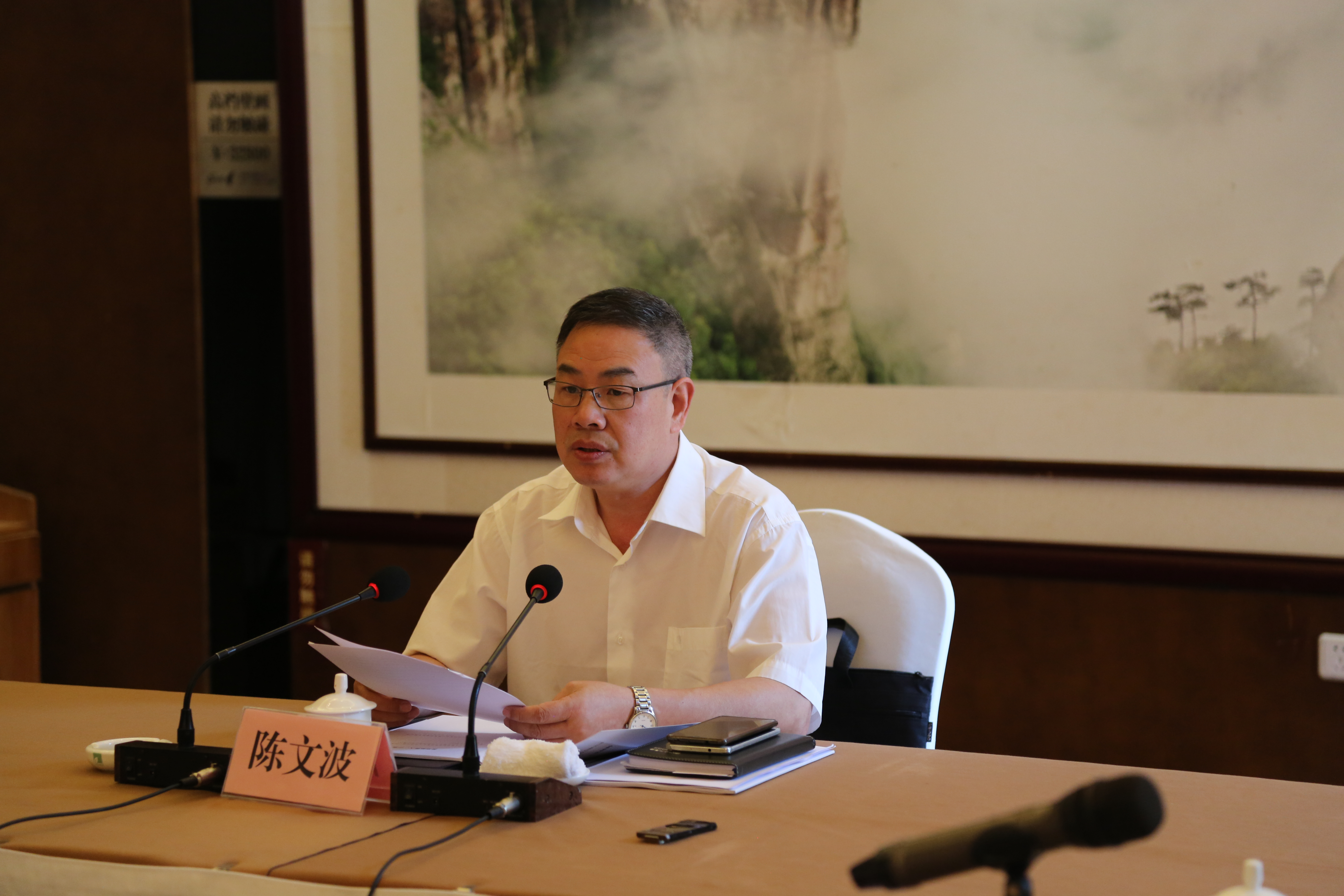 圖為公司董事長陳文波作大會報告 大會由公司董事長陳文波主持,公司董事、監事出席大會,公司高管列席本次會議。