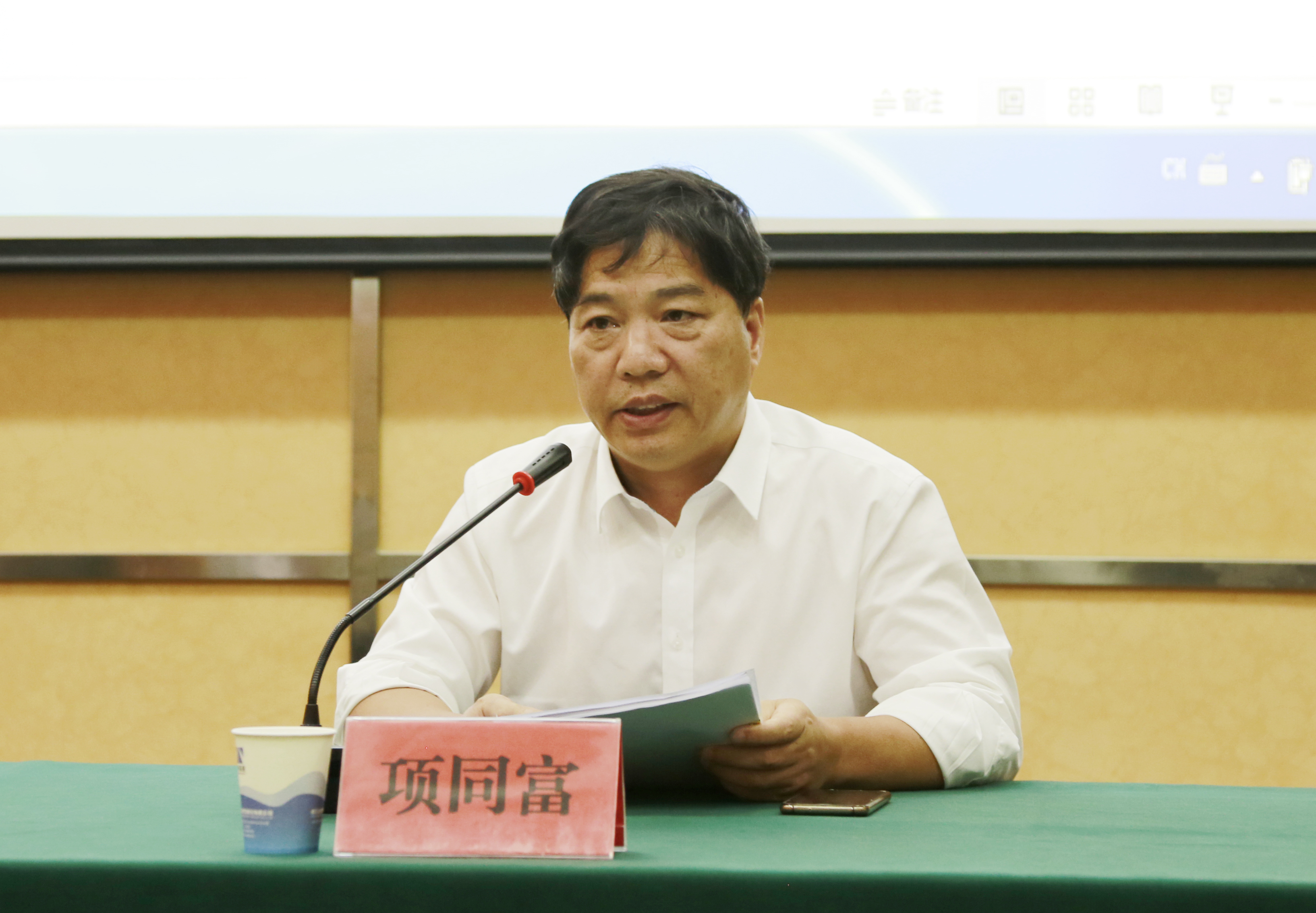 圖為項同富主持培訓 本次培訓邀請了高級工程師、安標考評員張樂飛到場為大家講解培訓內容。此前,她完成過對浙江滬杭甬高速公路股份有限公司、浙江金麗溫高速公路有限公司、黃山長江徽行高速公路有限責任公司等國一級安標指導工作,并順利通過考評。