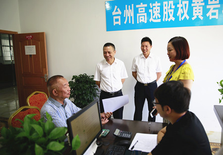 在黃巖收購點,張建平向正在咨詢的有3萬多股權的股東老王當年參股的舉動表示感謝,并就有關股權轉讓意義進行解釋,老王興奮地表示,“當時是看到地委、政府領導都帶頭募捐,很是感動,于是就積極響應號召,把手中的錢投到臺州高速公路建設中來。現在臺州市委市政府給我們提供了這么好的機會,股權轉讓后我能收益這么多,相對存入銀行或者民間借貸,收益更可觀,更安全保險。因此,我第一個表示贊成,如果可以,我今天就轉讓股權。”