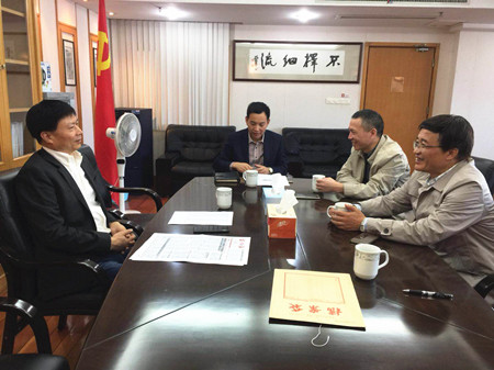 圖為市國資委主任徐豪和集團總經理張建平一起走訪市國稅局股東單位