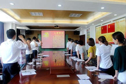 圖為全體黨員重溫入黨誓詞 會議第一項內容由該所黨支部書記王小勇帶領全體黨員重溫入黨誓詞,王小勇要求各位黨員牢記宗旨,做一名合格黨員。接下來全體黨員觀看《廖俊波:永遠的“樵夫”——一名共產黨員的樂與愛》視頻,學習市委書記王昌榮在全市領導干部會議上的講話精神等。大家結合高速精神大討論,對照先進典型和“四講四有”合格黨員標準,聯系個人思想和工作實際,認真開展批評與自我批評,查找不足,剖析原因,明確方向,并提出改進措施。 會后,王小勇強調,各位黨員要做到對黨忠誠,個人服從組織,樹立理想信念,強化黨員意識,做好本職工作。 鄭瑛芝