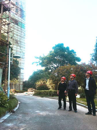 公司監(jiān)察室人員到溫嶺水韻新村墻體脫落修復(fù)工程現(xiàn)場督查