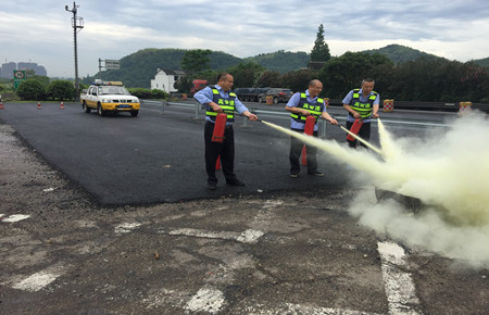 接到報警后,值勤隊長立即啟動應急預案,迅速帶領4名執勤隊趕赴現場,按規范要求擺放反光錐桶,用滅火器進行滅火。所有參演人員按照預案要求,各司其職,分工有序,報警、緊急出動、預警、疏散、救火,全套動作一氣呵成,圓滿完成演練任務。 通過本次演練活動,增強了應急隊員安全意識,進一步規范了應急搶險程序,提升了隧道消防應急快速反應和救災能力。