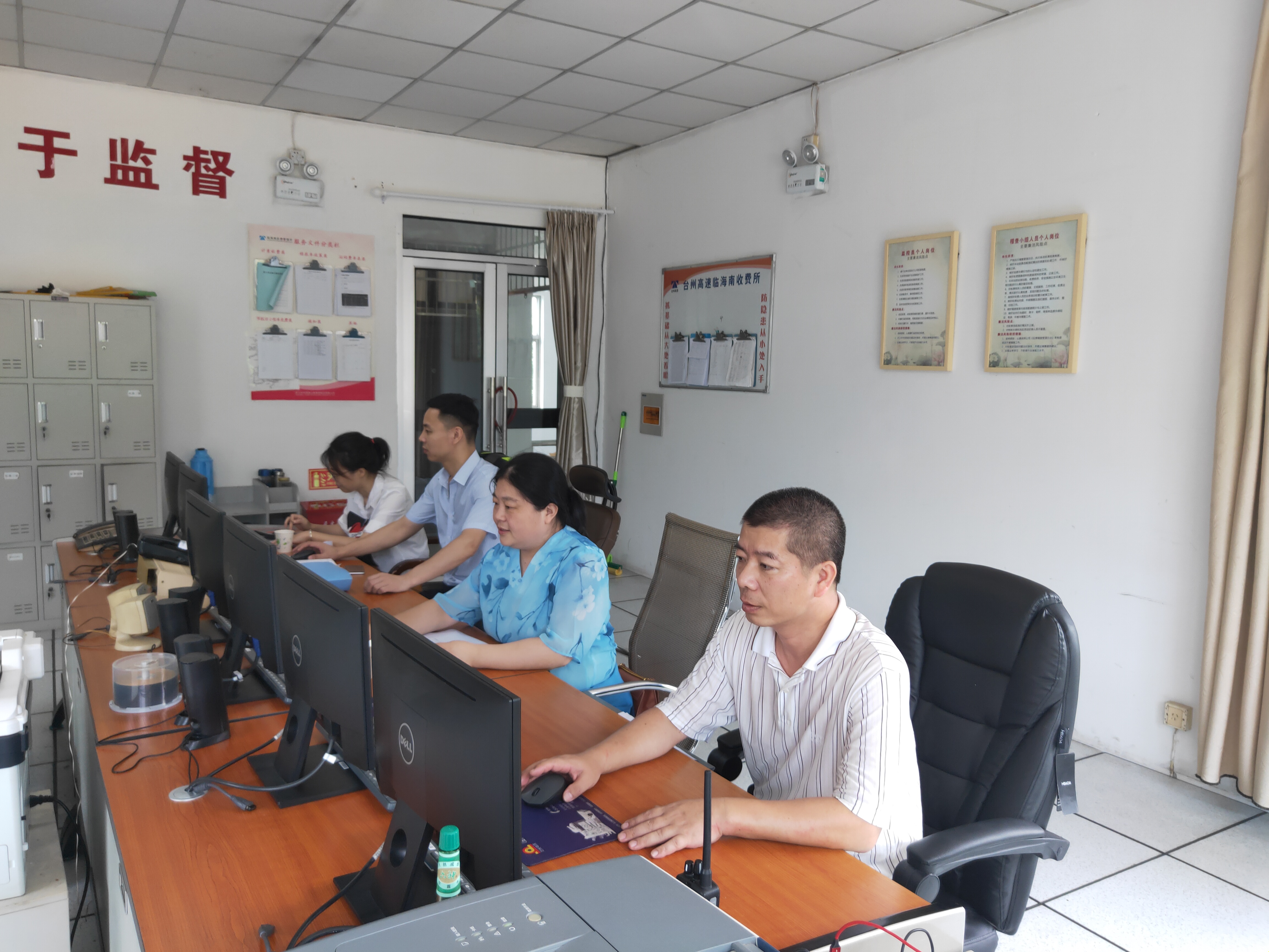 圖為檢查人員在崗亭現場盤卡 受今年新冠肺炎疫情影響,全國高速公路一度實行免費通行,自5月6日0時起才恢復正常收費,同時聯網收費系統有重大調整,ETC車輛出口收費金額實行“實時顯示”和“一次通行、一張賬單、一次扣費、一次告知”,原先的考核細則已不再適應,征費管理部根據高速公路全國聯網收費系統的實際,對原考核細則進行修改,并于五月底下發到各收費所。