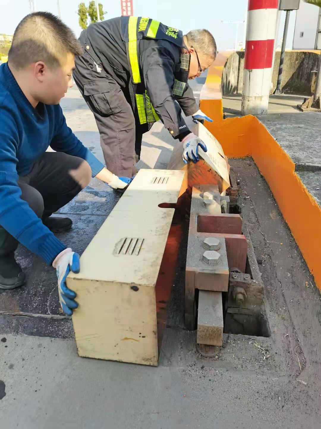 (圖為工作人員在對計重稱臺巡檢)