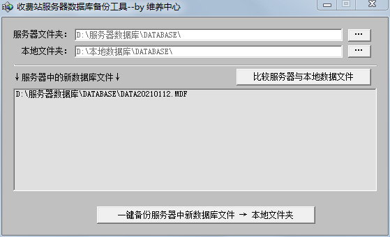 操作人員只要事先設(shè)置好服務(wù)器中的數(shù)據(jù)庫路徑和本地數(shù)據(jù)庫路徑,軟件就會自動判斷兩邊文件數(shù)量,如發(fā)現(xiàn)服務(wù)器中有新產(chǎn)生的文件就會顯示在軟件界面上,再通過下面的按鈕,一鍵備份至本地電腦上。