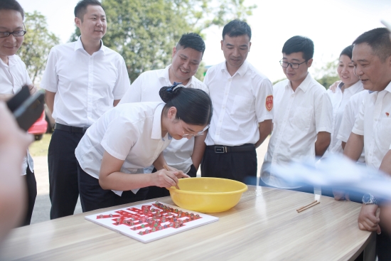 圖為活動現場 活動共由五個參賽隊伍組成,趣味活動項目都包含廉潔的寓意,《“廉”接不斷》將乒乓球置于球拍上,參賽隊員單手拿球拍繞小紅帽往返共20米;《飛鏢射“貪”》用飛鏢射圓形靶中的貪字;《蒙眼刺“貪”》參賽隊員手持牙簽蒙住眼睛走到對面將氣球上的貪字刺破;《反腐倡廉》用實心球將保齡球瓶推到;《填“廉”字》將規定粒數的彈珠用筷子夾到“廉”字的孔位上;《徐徐清風》將第一個茶杯里的乒乓球依次吹到最后一個茶杯里。員工們在各種廉潔趣味活動中加深了對廉潔文化的認知,營造良好的廉潔氛圍,促進基層廉政文化建設。