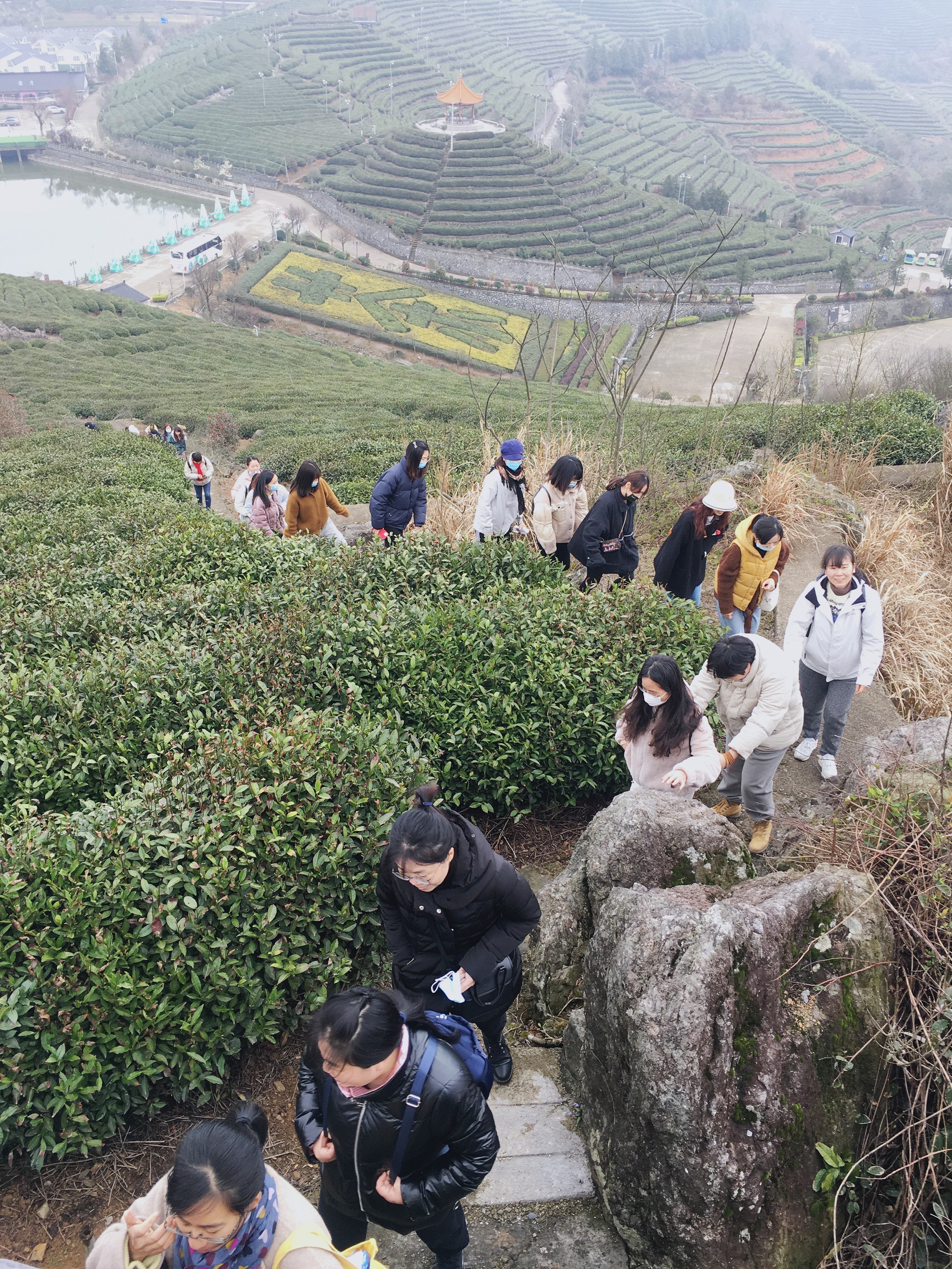 大地回暖,春意漸濃,44名女同志個個精神飽滿,從臨海羊巖山莊的一處茶園出發,按照設定路線,一路向上登頂。雖是春寒料峭,但仍抵擋不了女同胞們親近自然的熱情。行走在綠意盎然的茶園里,大家健步如飛,用腳步丈量健康,用照片記錄春意,用幫助體現友情……成為山間一道靚麗的風景線。