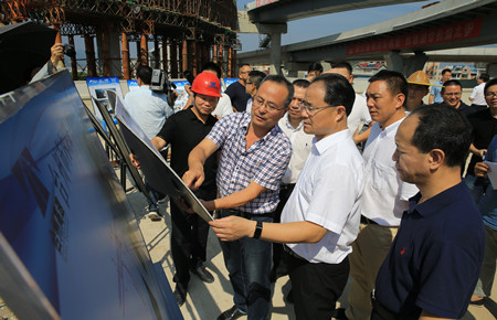 圖為市委書記王昌榮在6#立交查看工程進度展板