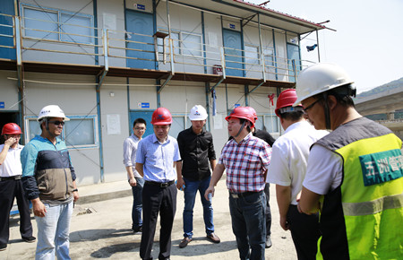 圖為集團副董事長、總經(jīng)理張建平檢查8#立交民工宿舍